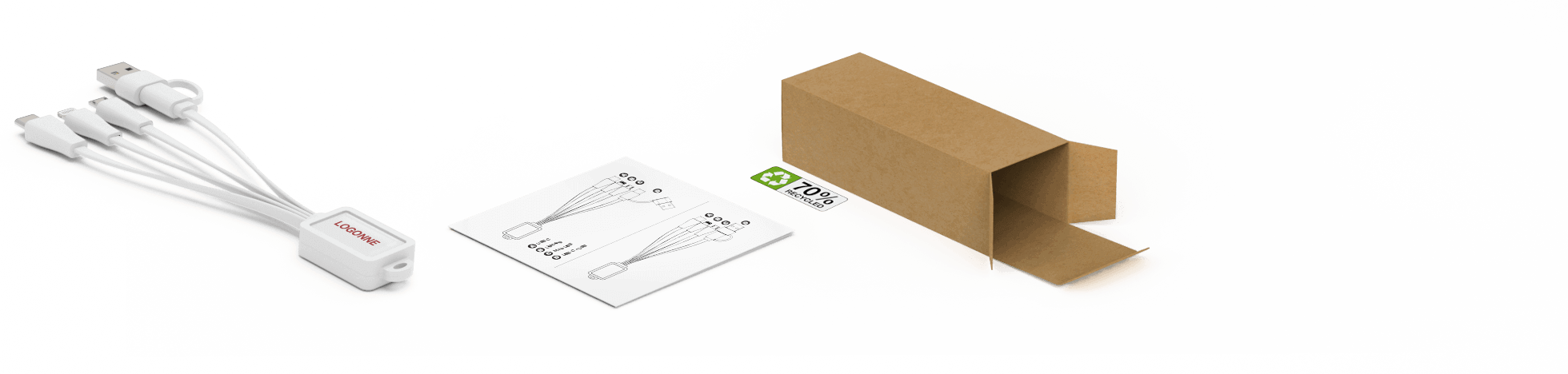 Yhdistä Multi USB -laturi tarvikevalikoimaamme, kuten avaimenperäkiinnikkeeseemme, ja tee siitä tavallisesta ilmaisjakelumainoksesta toimiva yrityslahja. Tarjoamme 2 vuoden takuun kaikille sähkötuotteillemme, jotta sinä ja vastaanottajasi voitte olla huoletta.