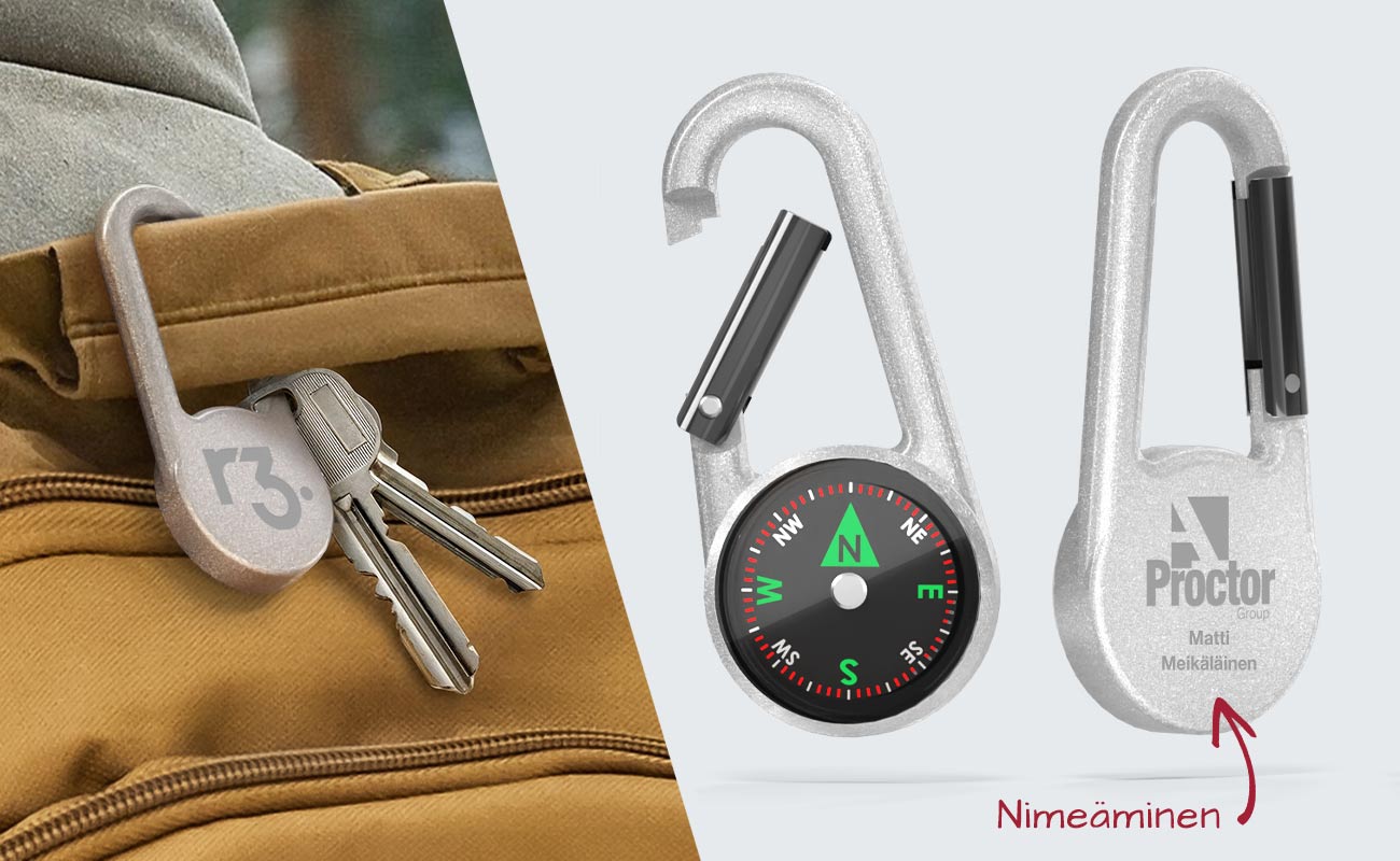 The WayPoint Compass Carabiner is a handy keyring that goes where you go. The magnetic needle is suspended in oil to ensure smooth rotation, and the outer shell is made of zinc alloy - it also features a secure spring-loaded clasp. The back of the WayPoint features a dedicated branding area to showcase your logo. Contact us today for our latest prices, samples and express delivery times.