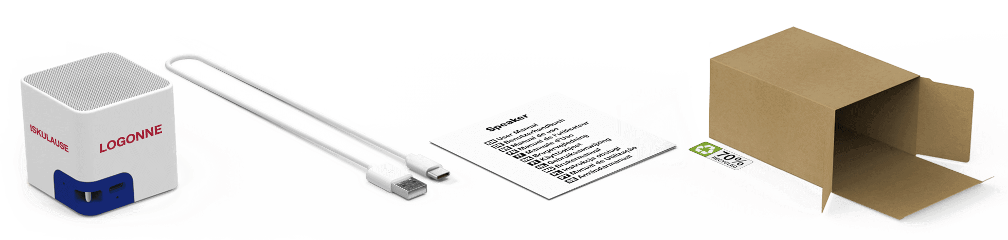 Kannettava, kovaääninen ja hauska. Cube Bluetooth® kaiutin on erottuva tapa mainostaa organisaatiotanne. Cuben 4 sivua voidaan brändätä käyttäen haluamaanne grafiikkaa. Cube on yhteensopiva kaikkien yleisimpien puhelinten ja tablettien kanssa.