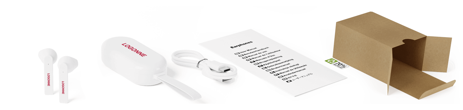 Voimme painaa logosi, iskulauseesi tai brändikuvasi silkkipainolla tai valokuvatulostuksella latauskotelon suurelle tulostusalueelle ja kuulokkeiden pienemmälle tulostusalueelle. Laadukkaat tulostuspalvelumme varmistavat, että tuotemerkkisi näyttää ammattimaiselta ja erottuu korvanappien ja kotelon tyylikkäästä ulkonäöstä. Kaikilla äänituotteillamme on 2 vuoden Flashbayn takuu, joka lisää mielenrauhaa siitä, että yrityksesi liittyy laadukkaaseen tuotteeseen.