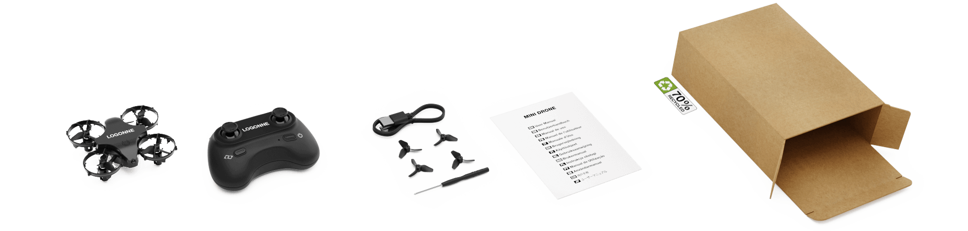 Siinä on helppo yhden kosketuksen nousu- ja laskeutumistoiminto, ja potkurisuoja parantaa turvallisuutta ja suojaa minipotkureita. Automaattinen esteiden välttämisominaisuus tekee leikkimisestä päätöntä tilaa ja 360° kääntötoimintoa käyttäen hauskaa ja turvallista vastaanottajille tai esittelynä messuosastollasi. Huomautus: Tässä minidronessa ei ole kameraa.