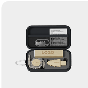 Tehty erityisesti yrityksesi markkinointitarkoituksiin, meidän valikoimamme matkalahjasetit voidaan painattaa logollasi ja yrityksesi viestillä. Saatavilla kolmessa eri koossa, pienet lahjasetit sisältävät Usb-muistitikun ja power bankin. Keskikokoiset lahjasetit sisältävät USB-muistitikun, power bankin sekä USB-autolaturin. Isot lahjasettimme sisältävät USB-muistitikun, power bankin, USB-autolaturin sekä Bluetooth-kaiuttimen. Näistä lahjasarjoista käytetään myös nimitystä oheistuotepaketit (merch packs) tai mainoslahjapaketit (swag packs). Jokaisessa lahjasetissä on mukana myös karabiner.