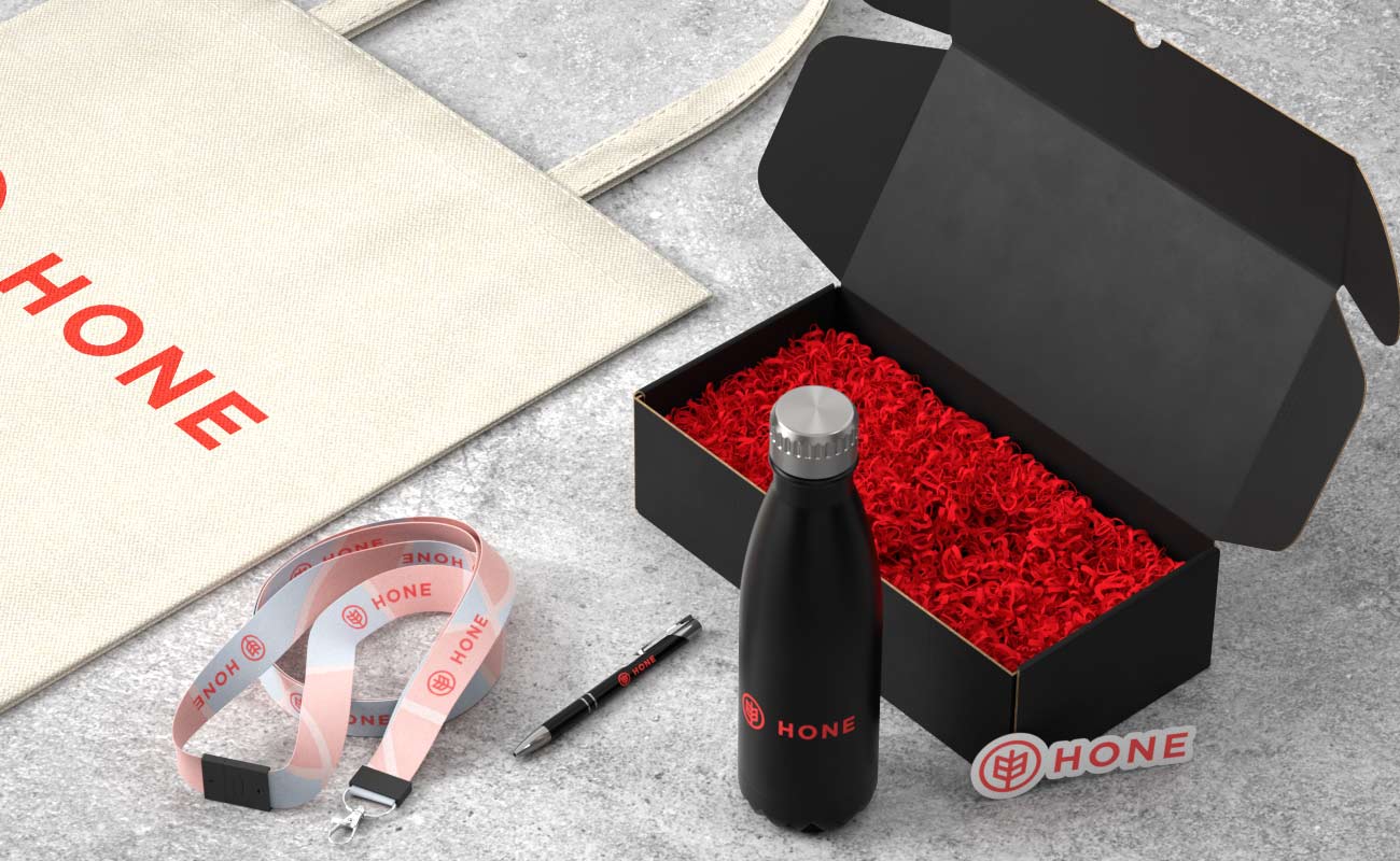 Expo M on suosittu lahjasettivaihtoehto, johon kuuluu ostoskassi, avainnauha, kynä ja vesipullo – kaikki valmiina varustettavaksi logollasi. Voit yhdistellä lahjasetissä olevia tuotteita useisiin muihin mallivaihtoehtoihin. Rasiassa voi myös olla logollasi varustettu tarra ja digitaalisesti tulostettu kortti, jossa on valitsemasi kuva – ilman lisämaksua. Ota yhteyttä jo tänään hintoihin, brändäykseen, toimitusaikoihin ja yhdistelmävaihtoehtoihin liittyen.