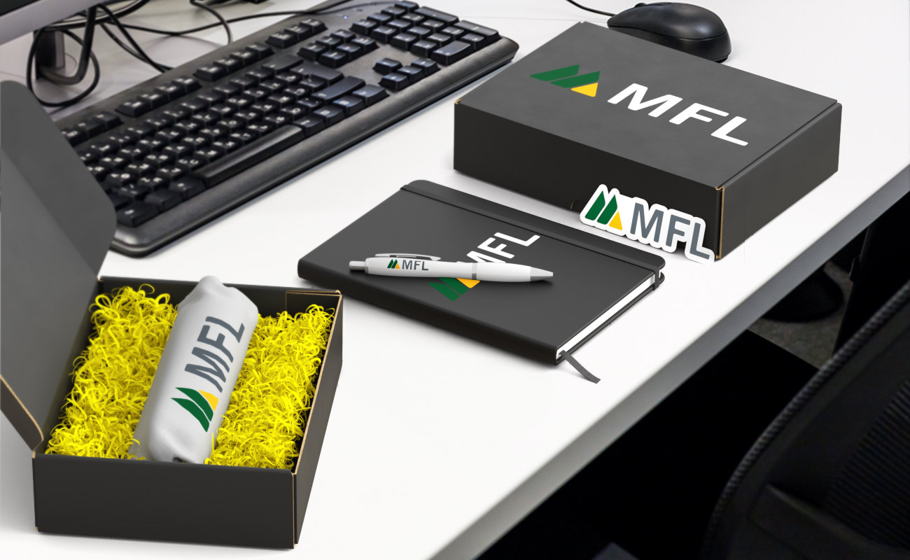 Welcome M on suosittu lahjapakkausvaihtoehto, johon kuuluu t-paita, kynä ja muistikirja, jotka kaikki ovat valmiita brändättäväksi logollasi. Mukana tulee myös kortti ja tarra, joihin voidaan digitaalisesti painaa valitsemasi kuva. Voit vapaasti yhdistellä lahjapakkaukseen kuuluvia tuotteita käyttämällä siihen alla olevaa työkalua tai kysymällä meiltä lisätietoja sitten, kun olet lähettänyt tarjouspyynnön tällä sivulla olevan Pikatarjous-lomakkeen kautta.