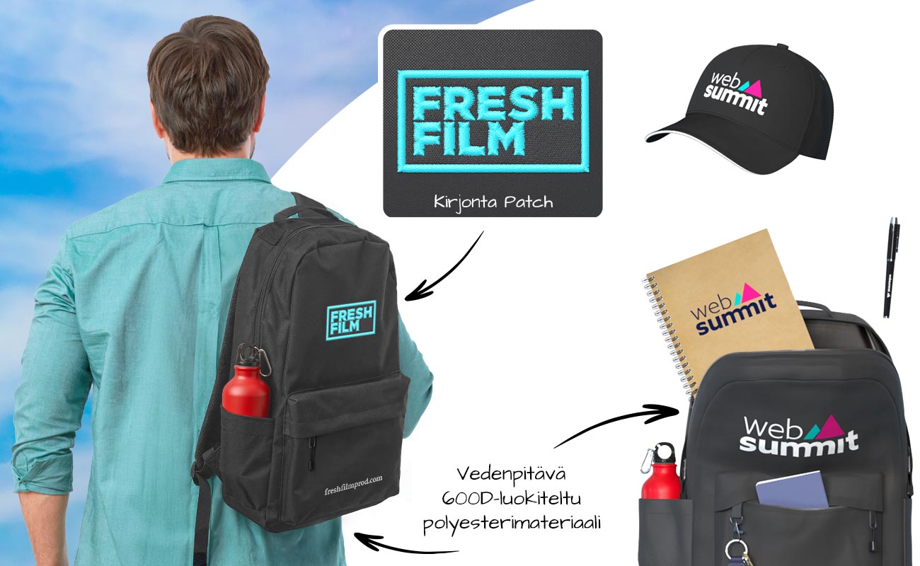 Tuotteen pinnalle voidaan painattaa yrityksesi logo loisteliaana värikuvana. Lähettämäsi kuvatiedoston tulisi olla korkearesoluutioinen, vähintään 300 DPI. Tiedosto voidaan lähettää PNG-, JPEG- tai GIF-muodossa. Internetsivuilta ladatuilla heikkolaatuisilla kuvilla ei saada tarkkaa lopputulosta. Valokuvapainatus kaikille painatusalueille sisältyy aina tuotteidemme hintaan.