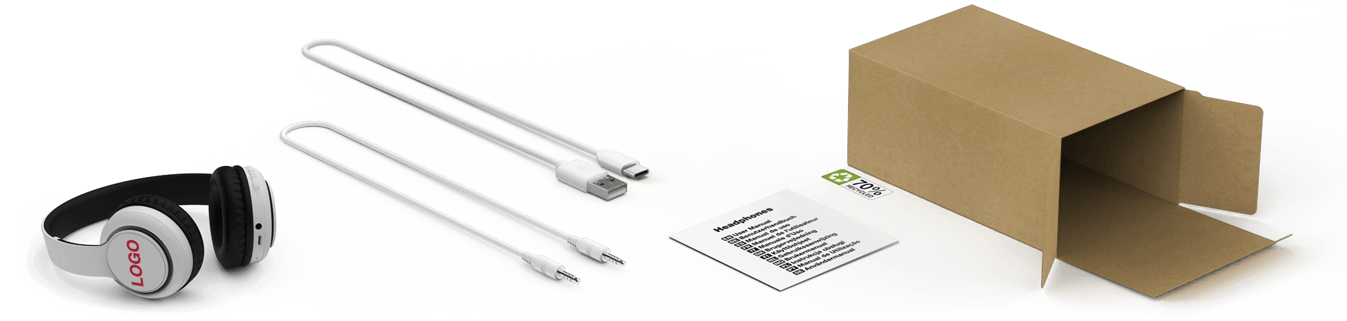Käyttäjä näkee Bluetooth® nimen mobiililaitteensa tai tablettinsa näytöllä yrittäessään parittaa tätä Audio tuotteeseen. Voimme muokata tämän nimen brändinne nimeksi, antaen organisaatiollenne enemmän näkyvyyttä. Jos et halua tätä palvelua, oletusasetuksena tuotteen nimeksi tulee 'Promo Audio".Mitat ja paino
