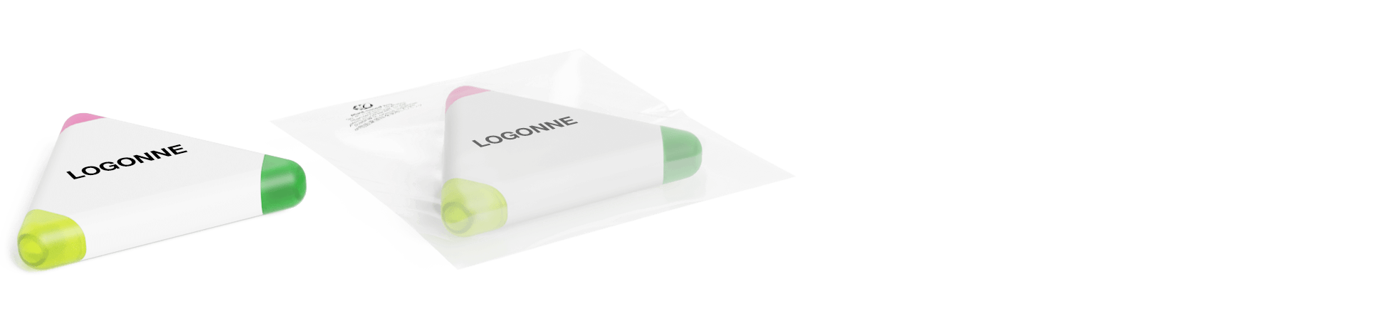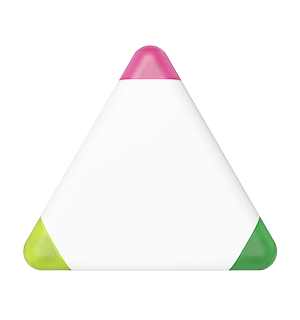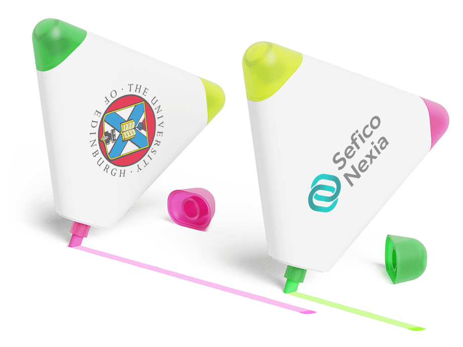 Triple-korostuskynässämme on 3 eri korostusväriä yhdessä ja samassa mallissa – keltainen, vihreä ja vaaleanpunainen. Huomiota herättävä kolmiomainen muoto tekee siitä myös erittäin suositun mainoslahjan. Voimme lisätä logosi, sloganisi ja muutakin Triplen molemmille puolille. Näin brändisi saa erinomaista näkyvyyttä tuotteessa, jota ei heitetä pois ja jota käytetään usein.
