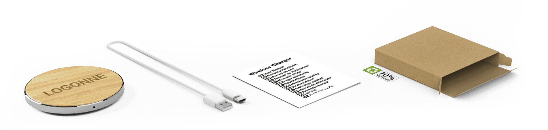 Luonnollinen bambupuupinnoite luo silmiinpistävän kontrastin elinvoimaisen brändikuvan kanssa ja yhdenmukaistaa yrityksesi ympäristöystävällisten arvojen kanssa. Valitse yksilöllinen nimeämispalvelumme, jos haluat luoda henkilökohtaisia langattomia latureita asiakkaiden tai työntekijöiden käyttöönotolle. Vaihtoehtoisesti voit numeroida yksikkösi tietojen keräämistä varten seuraavaa messuasi tai tapahtumaasi varten. Langaton Ring-laturi on myös osa uusia merkkipakkauksia, jotka sopivat erinomaisesti lahjoiksi työntekijöille ja asiakkaille!