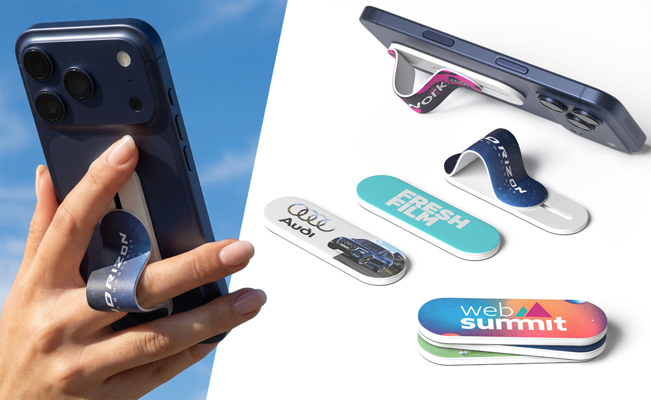 The Digit Phone Grip is a fun and easy promotional product that'll be kept and used again and again. The dedicated branding area can be Photo Printed with your logo, artwork and more. Simply affix the Digit to your phone by peeling off the sticky backing cover and pressing against the phone for 30 seconds. You can then slide the finger holder up and down as you desire.