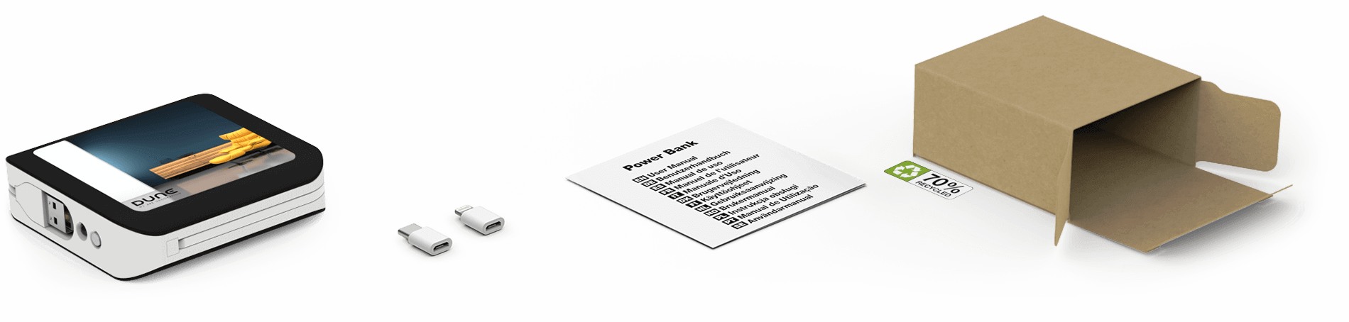 Tarjoamme erilaisia akkukapasiteetteja 4400mAh:sta 10050mAh:iin. Lisäksi laitteen mukana tulee lightning- ja USB-C-sovittimet, jotka tarjoavat useita latausmahdollisuuksia iPhoneille, Samsungeille ja jopa Kindleille. Tämä tarkoittaa, että vastaanottajasi voivat pysyä virralla liikkeellä, olipa kyse sitten työstä tai leikistä. Siinä on myös latauksen edistymisvalo, sisäänrakennettu LED-taskulamppu ja sisäänvedettävä latausjohto, jotka takaavat mukavuuden ja helppokäyttöisyyden. Ota yhteyttä täällä saadaksesi lisätietoja.