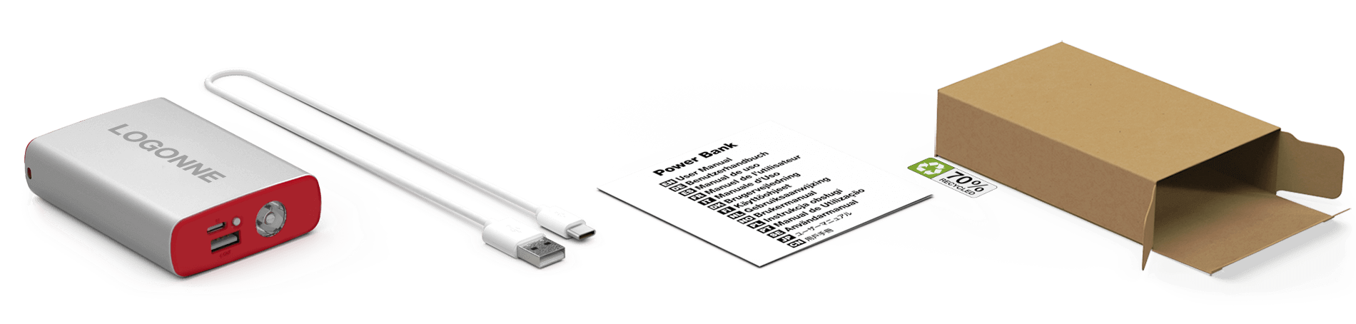 laturilla saa ladattua suosituimpia laitteita ennen kuin Power Bank täytyy ladata uudelleen: