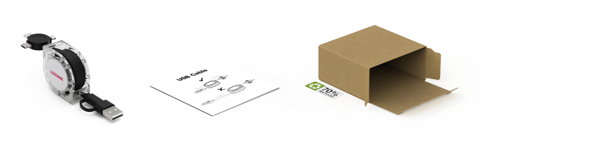 Motion USB- kaapelissa on laajennetty painatusalue molemmilla puolilla, johon voidaan kuvatulostaa kuvasi, logosi, iskulauseesi, tapahtumatiedot ja paljon muuta. Motion tukee tiedonsiirto- ja latausominaisuuksia, ja se on yhteensopiva kaikkien tärkeimpien laitteiden kanssa, joska siinä on neljä liitintä mukaan lukien standardi USB-liitin, Micro-USB, USB-C ja Lightning kaapeli. Kaapeleita voidaan saumattomasti laajentaa vetämällä molempia kaapelipäitä samanaikaisesti. Jos haluat puisen kosketuksen, tutustu -malliin.