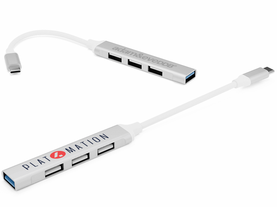 Expand Multi USB Hubilla on paikka markkinointikampanjassasi – ja mahdollisuuksiesi’ toimistoissa! Voimme räätälöidä tämän älykkään moniporttisen USB-vempaimen valitsemallasi muotoilulla ja menetelmällä. Olipa kyseessä sitten seulapainomme värikäs näyttö tai laserkaiverruksen terävä ulkonäkö, me siirrämme suunnittelusi tarkasti ja täsmällisesti suurelle kaksipuoliselle brändialueelle.