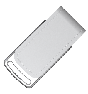 USB-liitin on suojattu, kun sitä ei käytetä, nahkakuoren avulla, joka voidaan avata ja sulkea magneettisoljella.