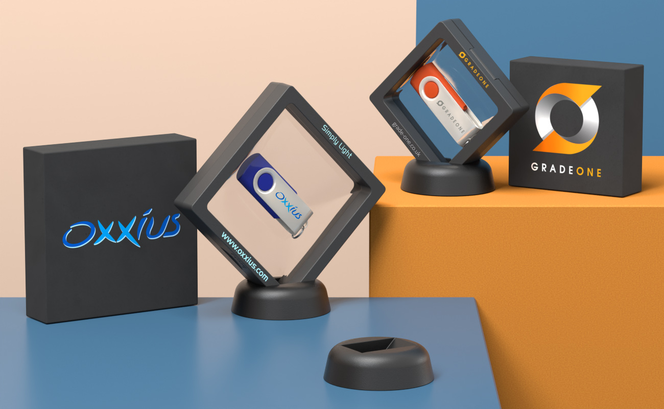 Our Snap Frame Small accessory is an eye-catching way to present and give away your custom branded promotional products. You can open and close the box via the secure clip. The transparent plastic film holds the product in place, and the cardboard outer-edges can be branded with your logo and more. The Snap Frame Small comes in a cardboard box sleeve that can also be branded with your logo.Kuvia tuotteesta