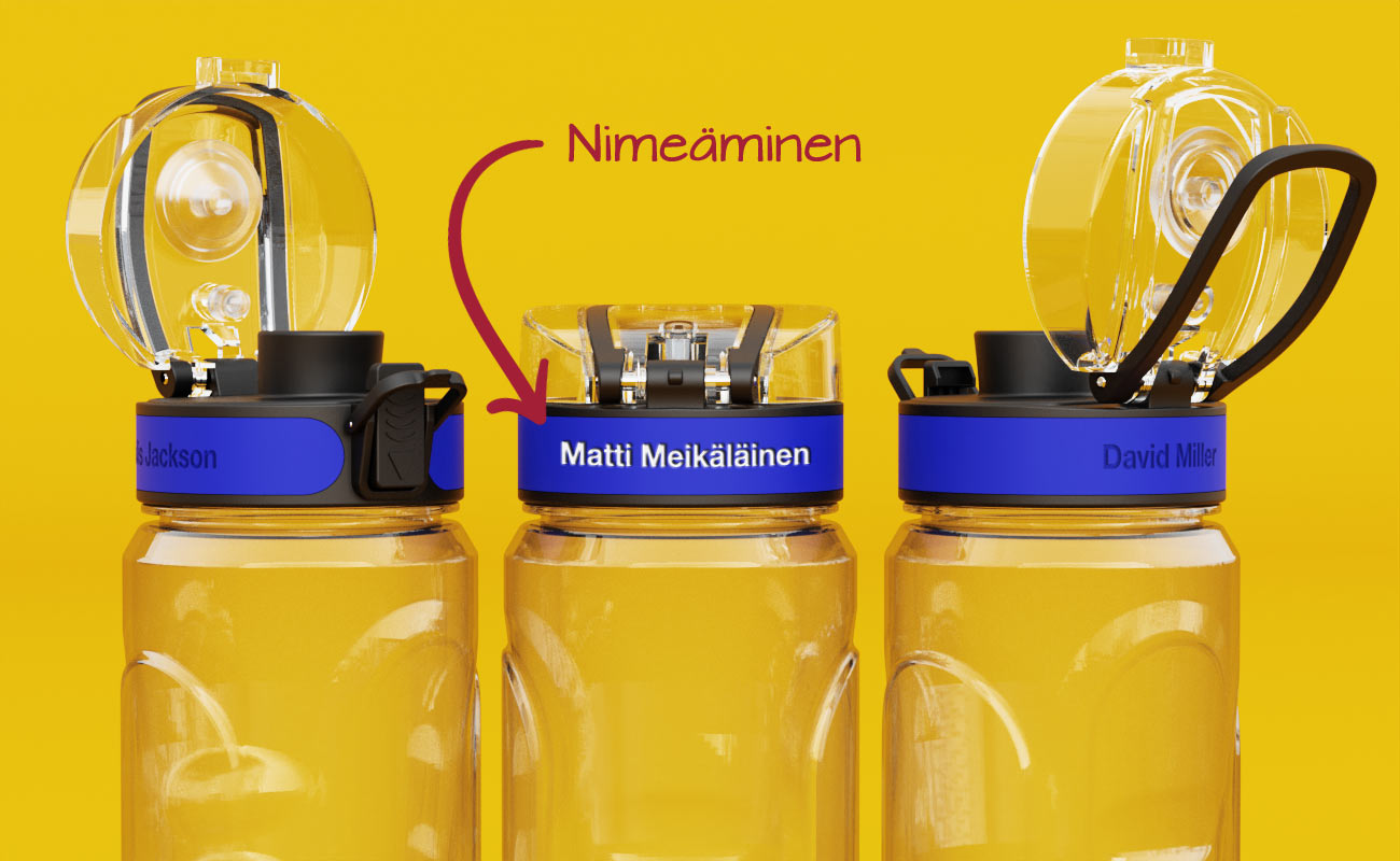 Kaiverrus luo pysyvän nimimerkinnän tuotteeseen. Palevlu sopii täydellisesti urheiluseuroille ja kouluille välttäen mahdollisen vesipullojen tai matkakuppien sekoittumisen keskenään harjoittelun tai kilpailun aikana. Yksilöity nimi kaiverretaan Juomatarvike-tuotteeseen logosi tai iskulauseesi rinnalle.Lisätarvikkeet