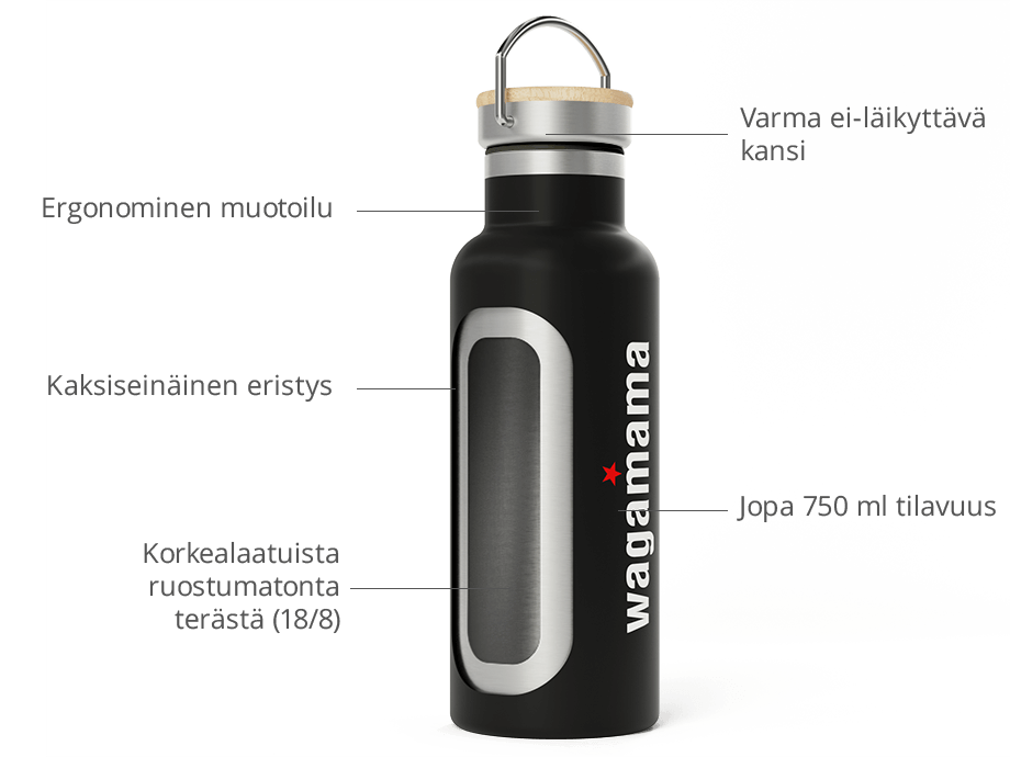 Voimme brändätä juomatarvikkeesi upealla grafiikalla, koko tuotteen ympärille. Lopputulos on erittäin eloisa ja silmiinpistävä promotuote joka säilyy käytössä päivittäin, antaen brändillesi laajan näkyvyyden.